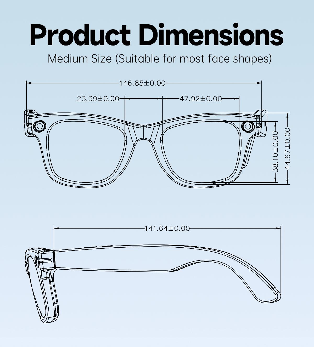 It can transfer photos, videos, etc. to mobile phones via WIFI. It features slide touch for volume adjustment and wear detection. Equipped with dual microphones with ENC noise reduction, it supports Bluetooth calling and music playback (with track switching and pause for music enjoyment).It adopts Jerry + Allwinner main control chips with low power consumption and low latency, ensuring long battery life. It offers convenient operation with two physical buttons plus slide touch, an ultra-light 37g design for a weightless wearing experience, and is configurable with various lenses such as sunglasses, blue light-blocking, photochromic, and myopic lenses.It has a 290mAh large battery and an IP66 rating for dust, water, and sweat resistance.