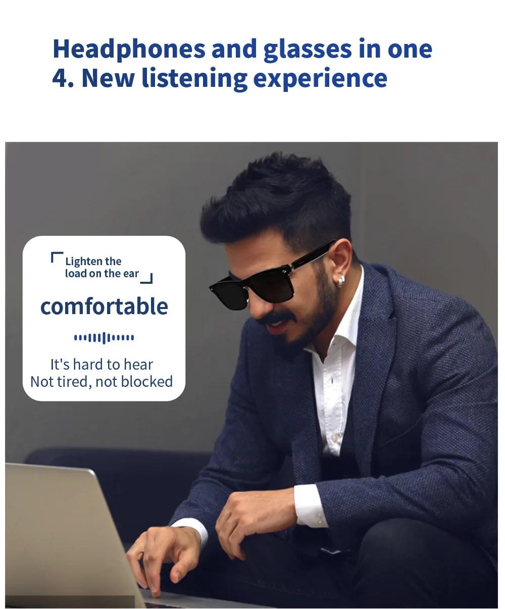 --Bluetooth-compatible glasses speaker: dynamic drive, unique sound cavity design, avoid hearing impairment --In-ear design helps you keep an eye on your surroundings, avoid danger and enjoy music --Open solution: allows you not only to listening to music, answer calls, but also to hear notifications from glasses, while listening to the world around you --The sunglasses have built-in noise-canceling microphones that allow you to make and receive calls --Transmission distance: 33 feet (10 meters) Description: Product : Smart Glasses Lens: anti-blue light lens; Lens material: acrylic; Frame material: ABS+PC; Speaker type: dynamic speaker; Microphone: -40dB±3dB; Compatible profiles: A2DP, AVRCP, HSP, HFP; Transmission distance: 33 feet (10 meters); Battery: Rechargeable Li-ion 75mAh; Continuous playback: 3-6 hours (normal volume); Standby time: 10 days; Charging time: 2 hours; Waterproof grade: IP7; Bluetooth-compatible version: CSR5.0; Working temperature: -10°C-+50°C Humidity 0-90%; Packing list: 1 x Bluetooth-compatible glasses 1 x USB cable 1 x glasses cloth 1 x instruction manual 1 x packing box Note: 1. Due to manual measurement, please allow 1-3cm error. Make sure you don't mind before bidding. 2. Due to the difference of different monitors, the picture may not reflect the actual color of the product. Thanks.