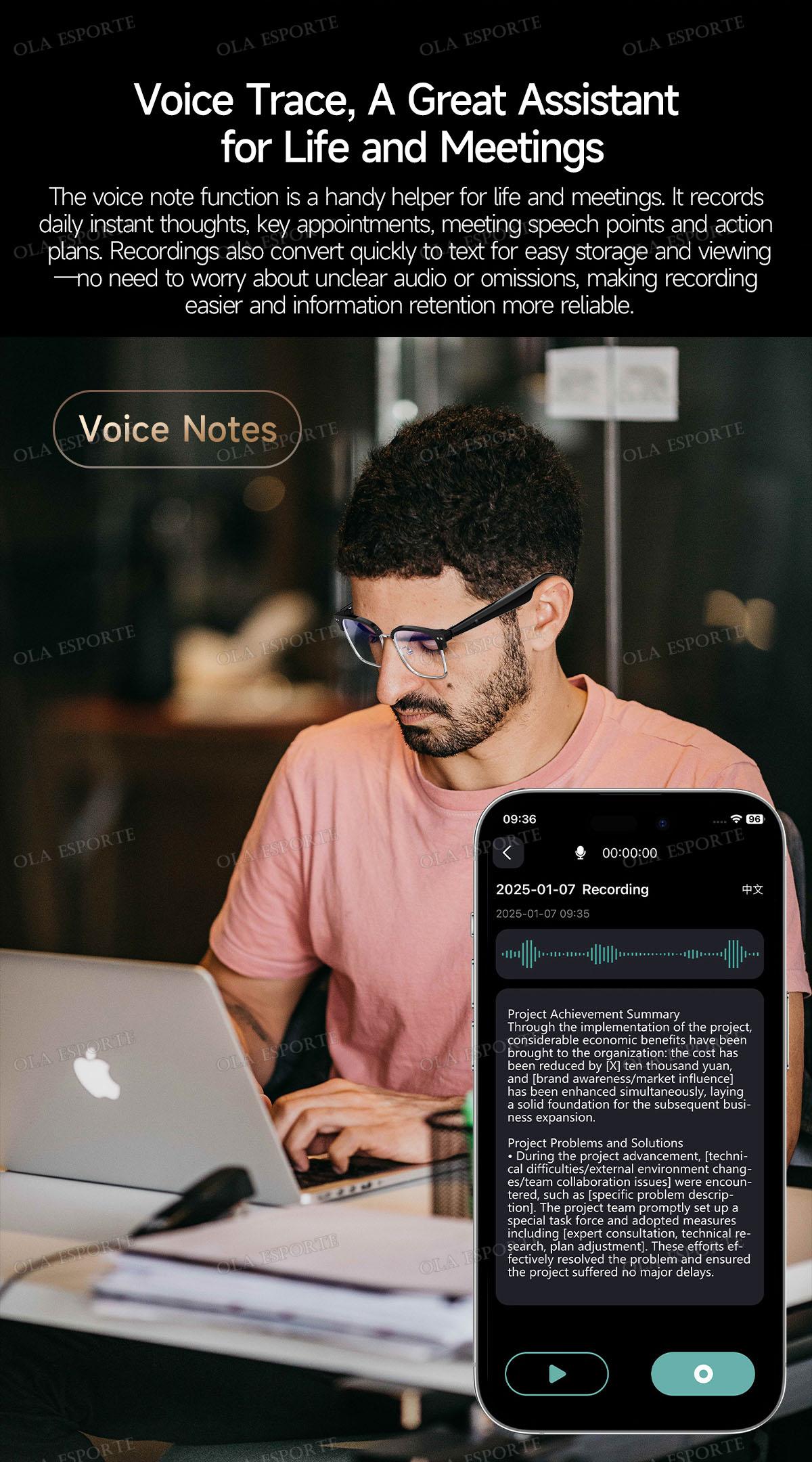 Capture your thoughts and ideas on the go with the voice notes feature. Additionally, the sleep-aid mode helps you relax and get a good night's sleep.
